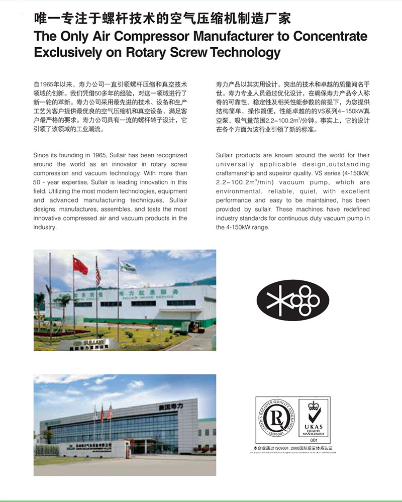 寿力VS系列真空泵是美国寿力亚洲实业有限公司开发的系列真空泵产品, 该系列产品采用美国原装螺杆主机,高效NEMA电机,采用一体化整合设计,优化了风冷却系统,整机性能稳定、可靠,是您的最佳选择。节能是变频真空泵的最大优点,尤其是当用户气量波动范围比较大时,其灵活性和可靠性使得变频真空泵的节能优势更为明显,尤其对于加/卸载调节的喷油螺杆真空泵。